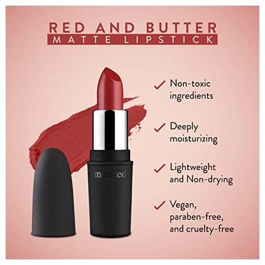 Mented Cosmetics Red Matte Lipstick - Red and Butter Deep Red, Long Lasting Lipstick - Waterproof, Dark Red Lip Stain - Red Lipstick - Smudgeproof Matte Red Lipstick for 24 Hour Stay - Dark Lip Color