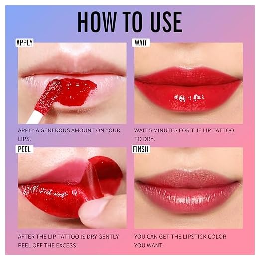 KIMUSE Tattoo Peel & Reveal Lip Stain, Waterproof Long Lasting Peel Off Lip Liner Tattoo, Non Stick Color Peel Off Mask Lip Gloss Makeup