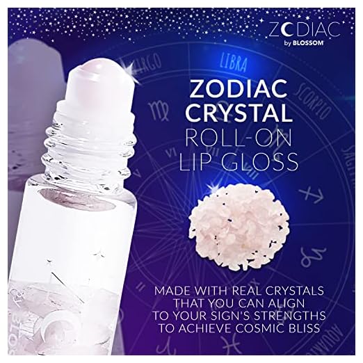 Blossom Zodiac Sign Vanilla Scented Moisturizing Roll-On Lip Gloss with Crystals, Made in USA, 0.20 fl. oz./5.9ml, Libra