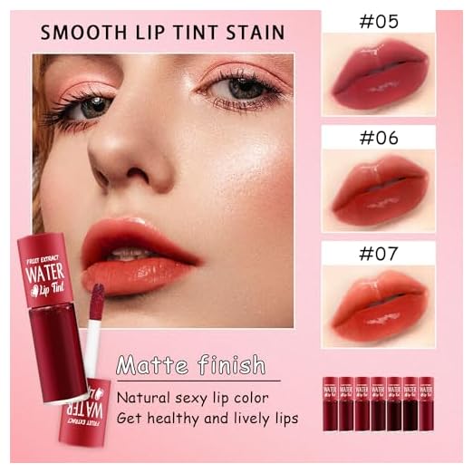 7 Colors Lip Tint Stain Set, Plumping Mini Liquid Lipstick, Korean Lip Gloss Moisturizing Natural, Multi-Use Lip and Cheek Tint, Long lasting Non-Stick Cup Waterproof,High Pigment, Vivid Color (SET A)