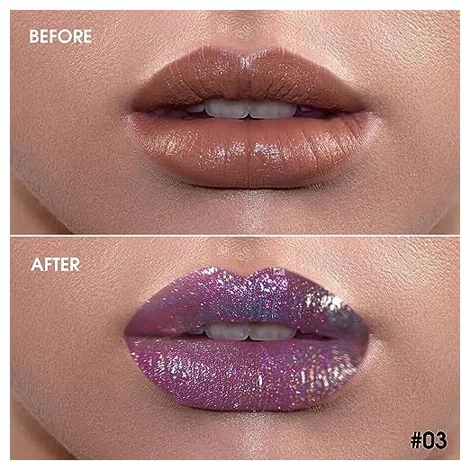 Chameleon Liquid Lipstick, Oil-based Diamond Shiny Glitter Lip Gloss, Sparkly Color Intense Shimmery Finish, Long wears, Holographic Talc Free (#03 Light Purple Pink)