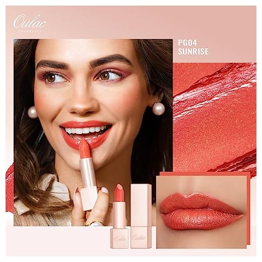 Oulac Moisturizing Coral Lipstick for Women Tinted Lip Balm Infused with Sodium Hyaluronate Acid, Lightweight Lip Makeup, Vegan & Gluten Free, PG04 Sunrise