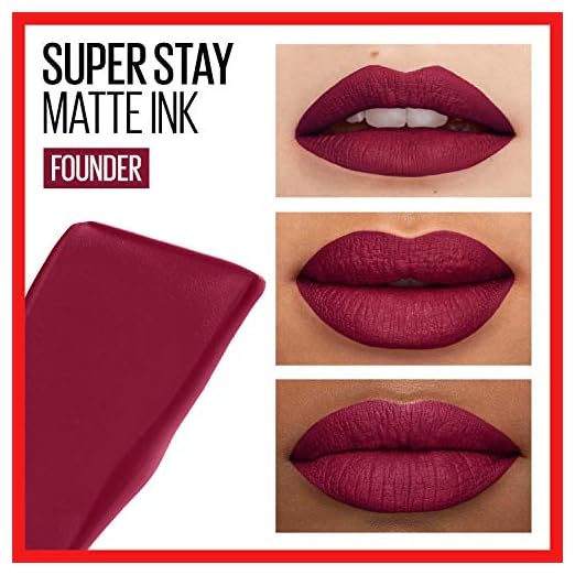 Maybelline Super Stay Matte Ink Liquid Lipstick Makeup, Long Lasting High Impact Color, Up to 16H Wear, Founder, Cranberry Red, 1 Count