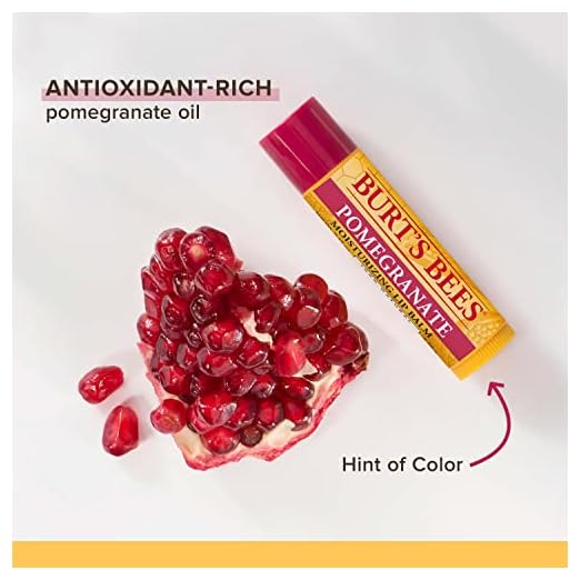 Burt's Bees Pomegranate Lip Balm, Lip Moisturizer With Responsibly Sourced Beeswax, Tint-Free, Natural Conditioning Lip Treatment, 4 Tubes, 0.15 oz.