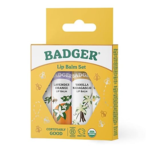 Badger - Classic Lip Balm Gold Box with Aloe, Extra Virgin Olive Oil, Beeswax & Essential Oils, Lip Balm Variety Pack, Certified Organic, 0.15 oz (4 Pack)