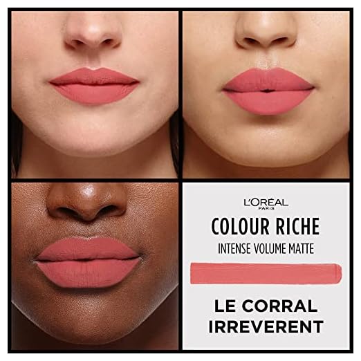 L’Oréal Paris Colour Riche Intense Volume Matte Lipstick, Lip Color Infused with Hyaluronic Acid for up to 16hr All Day Comfort, Le Coral Irreverent, 0.06 oz