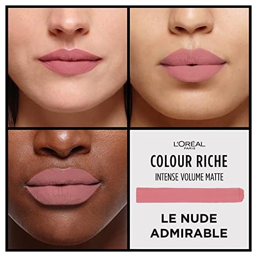 L’Oréal Paris Colour Riche Intense Volume Matte Lipstick, Lip Color Infused with Hyaluronic Acid for up to 16hr All Day Comfort, Le Nude Admirable, 0.06 Oz