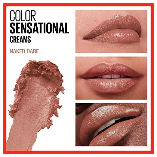 Maybelline Color Sensational Lipstick, Lip Makeup, Cream Finish, Hydrating Lipstick, Nude, Pink, Red, Plum Lip Color, Naked Dare, 0.15 oz; (Packaging May Vary)