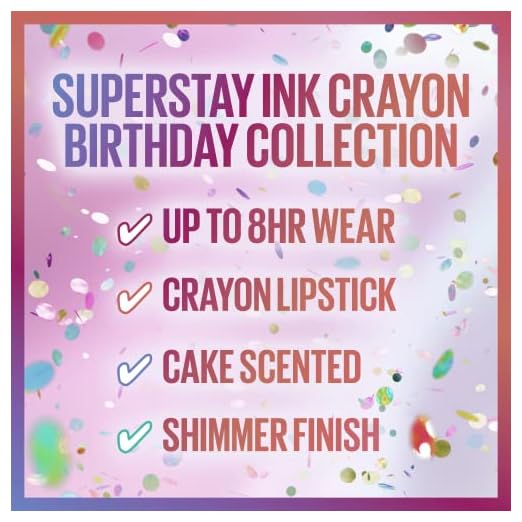 MAYBELLINE New York Super Stay Ink Crayon Matte Longwear Lipstick Makeup, Long Lasting Matte Lipstick with Built-In Sharpener, Limited Edition Birthday Collection, Throw a Party, 0.04 oz