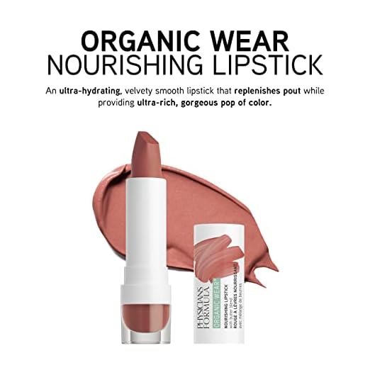 Physicians Formula Organic Wear All Natural Lipstick, Desert Rose, Nourishing, Dermatologist Approved, Gluten Free