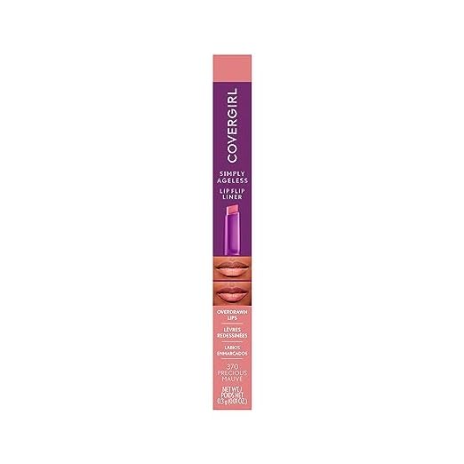 COVERGIRL Simply Ageless Lip Flip Liner, Precious Mauve, Pack of 1 A richly pigmented lip product that delivers comfortable wear with smooth application and a flattering finish. Formulated to balance longwear and hydration; suitable for daily wear and special occasions.