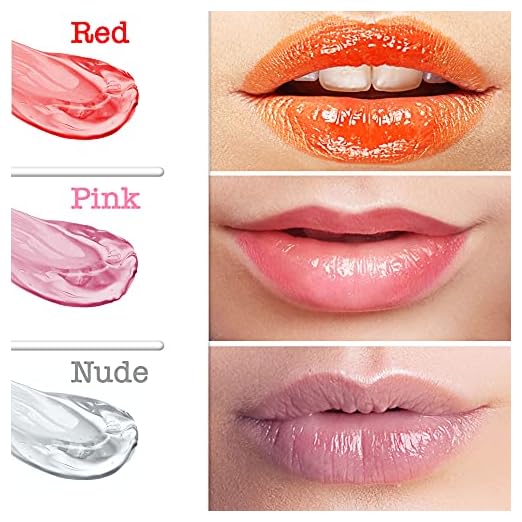 Lip Plumper Trio Set for Sexy Lips - (2/10 Strength) - Natural Lip Enhancer for Fuller Lips - Hydrating, Nourishing, Invigorating Plump Volumizer for Lips - Red, Pink, and Clear Lip Plumping Gloss