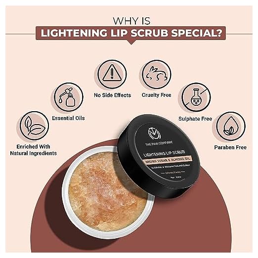 The Man Company Lightening Lip Scrub for Dark Lips & pigmentation-10gm| Heals Dry & Chapped Lips|Restore Natural Colour, Moisturizes|Enriched with Brown Sugar, Almond Oil, Vitamin E & Argan Oil