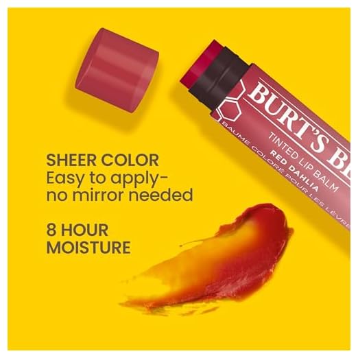 Burt's Bees Lip Tint Balm, Red Dahlia, 2-Pack, Hydrating Shea Butter for a Natural Looking Buildable Finish